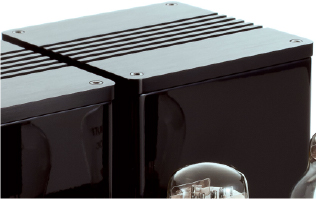 輝くステンレスシャーシに、ブラックヘアライン仕上げの重厚なアルミフロントパネルと黒光沢塗装の大型トランスを組み合わせたコントラストが美しい精悍なデザインです。トランスの天面には8mm厚のアルミ切削のトッププレートを装着し、トランスの振動低減と放熱効果の改善を図っています。