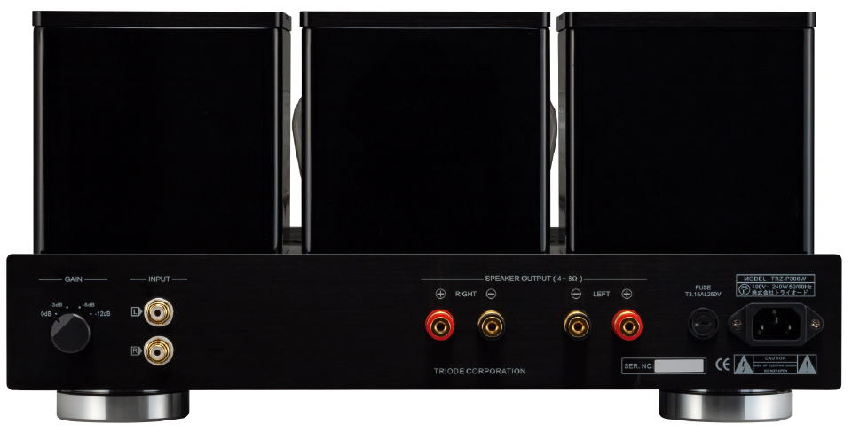 このTRZ-300Wをベースにパワーアンプとして設計し直したのが本機TRZ-P300Wです。直熱三極管の音楽性豊かなサウンドとパラシングルによるしっかりしたドライブ能力を備えています。